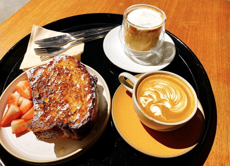 草莓焦糖吐司表面微焦搭配糖粉,外脆內軟也很好吃,不過吃到第二片時會覺得小小甜膩感,搭配草莓吃我是覺得還好XD