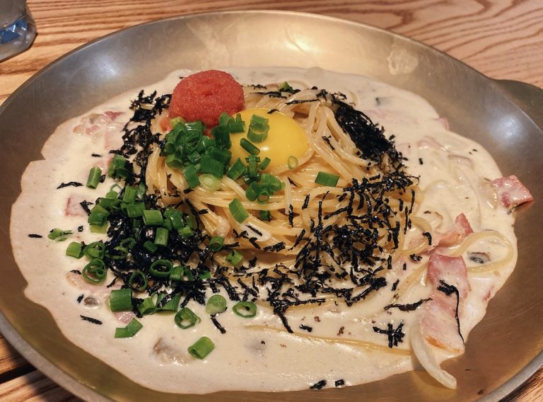 明太子+蛋+培根+奶油醬整個是天堂級美味啊!我跟韓國朋友都吃得不停驚呼:也太好吃了!