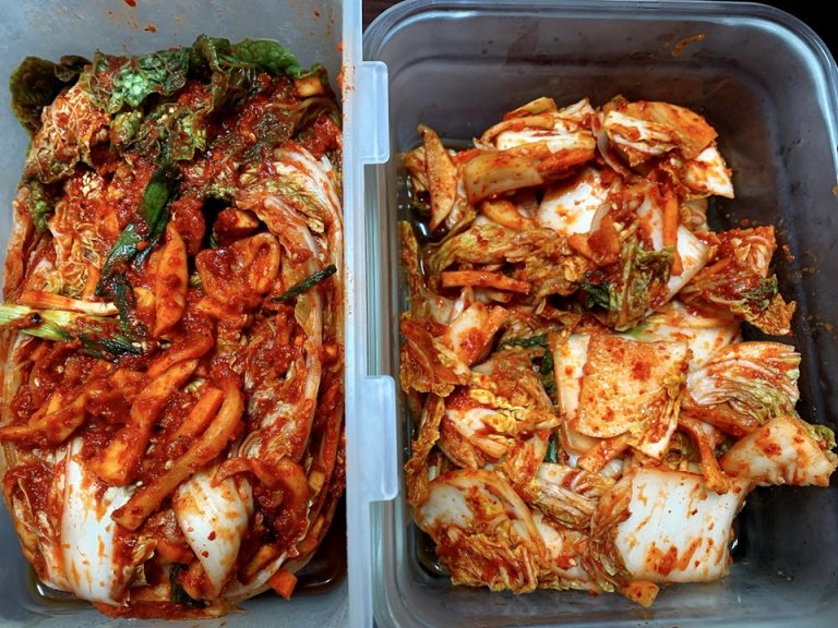 塗抹完成之後再用最外層的菜葉繞整顆泡菜,放入保鮮盒冷藏